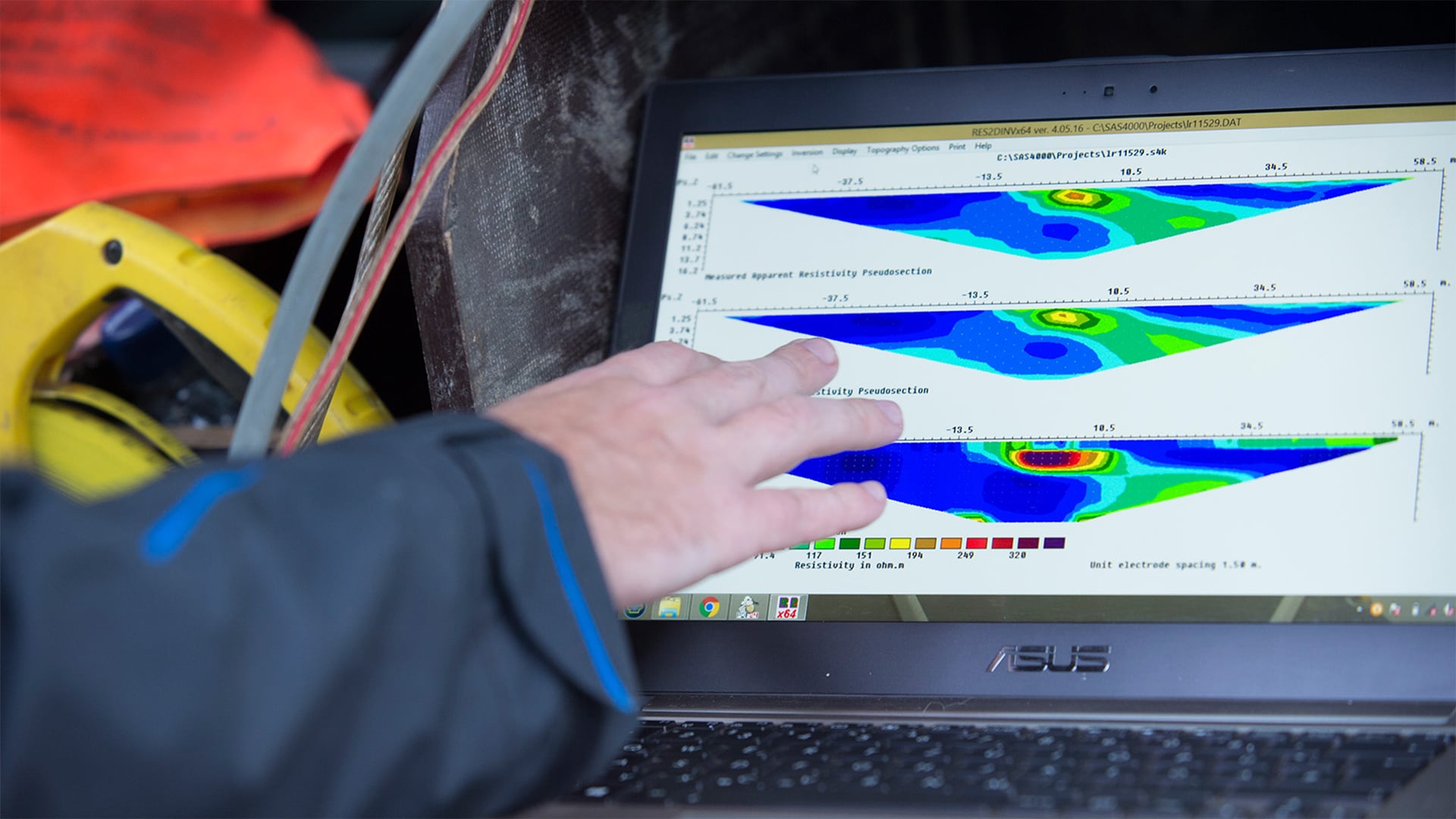 „Jedes Fundament braucht einen belastbaren Untergrund.“ Strukturgeologische Anomalien wie Karst, Erdfälle oder Bergsenkungsgebiete können die Stabilität erheblich beeinträchtigen. Mit geoelektrischen Kartierungen erhalten wir einen detaillierten, zweidimensionalen Einblick in den Untergrund, der durch punktuelle Bohrungen allein nicht erreichbar wäre. Diese Technik ermöglicht es uns, potenzielle Tragfähigkeitseinschränkungen frühzeitig zu erkennen und in zahllosen Gutachten – besonders im Bereich des Windenergieanlagenbaus – fundierte Bewertungen abzugeben. So können wir geeignete Alternativstandorte identifizieren und die beste Basis für Ihr Bauprojekt sichern.